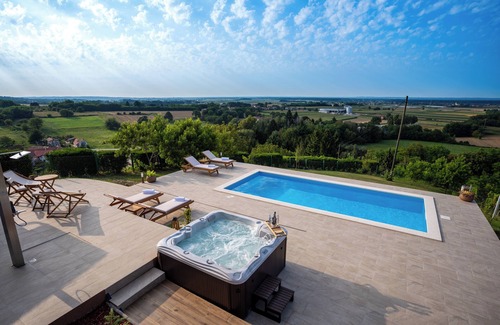 Best-rates for the Novigrad Podravski house starts from $377 per night with includes Sports/Activities, Wellness Facilities, Hot Tub, Air Conditioner, Designated Smoking Area, TV, Spa, Kitchen, Fireplace/Heating, Private Pool, Ocean View, Bedding/Linens, Guest Services, Entertainment, Laundry, Balcony/Terrace, Barbecue/Outdoor Cooking, Child Friendly, Internet, Parking, Pool, View with all other amenities. Perfect for Weddings is committed to ensuring every guest experiences a comfortable and extraordinary stay, whether planning a romantic getaway, a honeymoon, a pet-friendly stay, or celebrating with the entire wedding party.