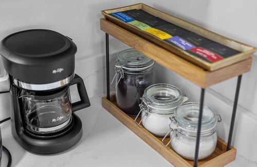 • Modern Bathroom: Relax in the full bathtub or freshen up with a rejuvenating shower.