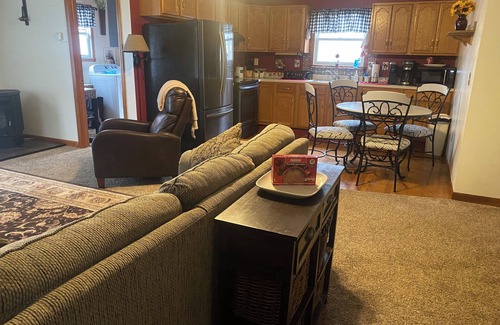 Escape to this lovely house in picturesque Hillsboro. This marvelous property features 2 cozy bedrooms with a queen and double bed that can be converted to a queen, a bathroom with a relaxing bathtub, and convenient amenities like AC, heating, and Wi-Fi. You're sure to make fantastic memories with a stay at our place. Located on a hilltop with stunning views, especially in the fall. Very quiet surroundings located 10 minutes from town. Big yard, fire pit and a ping pong table and shuffleboard table in the garage. Also has a grill for outdoor cooking.
