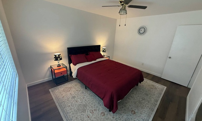 Stay comfortably in Riverside at this 2-bedroom house. The bedrooms feature 2 queen beds, perfect for a good night's sleep. With heating and AC, you'll always be at the right temperature. The bathroom even has a bidet for added comfort. This beautiful property is a cozy retreat for guests looking to relax and unwind. We're happy to assist with any questions while you stay at our house.
