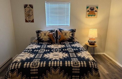 Stay comfortably in Navajo Dam at this 2-bedroom house. This charming property features 1 queen bed and 2 twin bed, perfect for a small group of guests. With heating and AC, you'll be nice and cozy no matter the season. The living room offers 2 additional twin beds for extra sleeping space. Make your holiday one for the books with a stay at our place. Steps away from public access to the World Renowned San Juan river and 20 minutes away from beautiful Navajo Dam Lake.