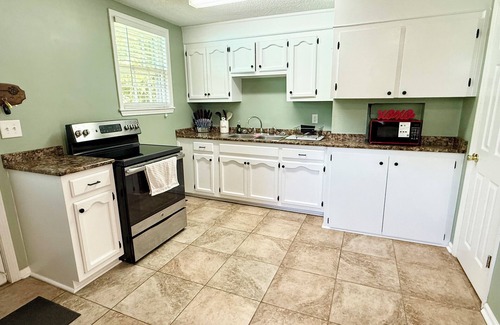 This home is located less than 1 mile to all the downtown fun! Sidewalks are available if you choose to walk. The kitchen does include a Keurig a microwave a full-size fridge and stove. The home is 3 miles from the Georgia national Fairgrounds.