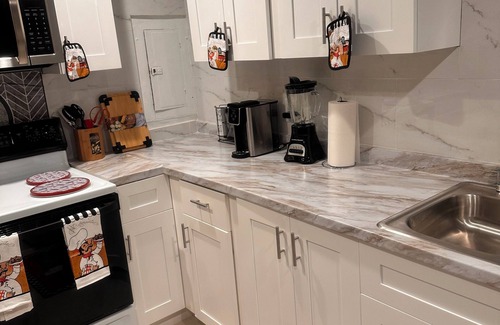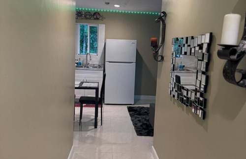 This North Miami Beach house boasts 2 lovely bedrooms, one with a twin bed and the other with a queen bed. The bathroom features a relaxing bathtub and a convenient hair dryer. In addition, there's a serene living room with 2 comfy sofa beds for extra guests. Experience a cool and peaceful retreat at our cozy property. We're happy to assist with any questions while you stay at our house.