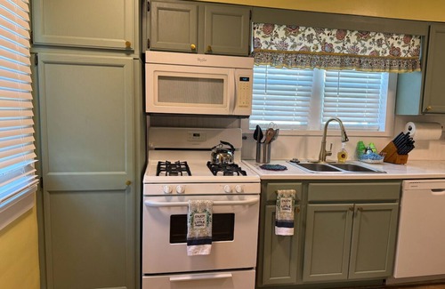 Fully Equipped Kitchen: Stocked with appliances, cookware, utensils, perfect for home-cooked meals. Comfortable Living Room: Unwind on the plush sofa with access to Wi-Fi and a smart TV for streaming your favorite shows. AppleTV, DVD