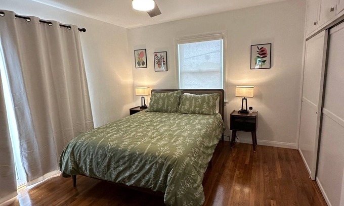 Located in San Diego, enjoy what this 2-bedroom house has to offer. This delightful property features 2 queen beds, a washing machine, mini split heating/cooling system, and WiFi. Large enclosed outdoor space includes a covered patio with furniture and gas barbeque for your enjoyment. The serene atmosphere of the house provides a peaceful retreat for guests looking to unwind. We hope you'll enjoy your stay at our house.