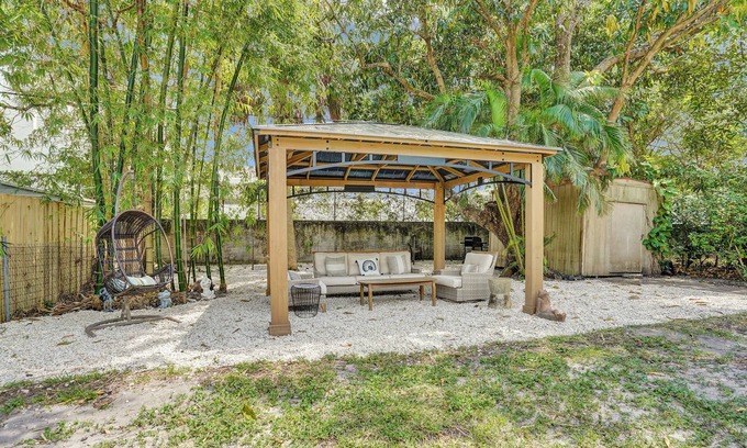 Discover the beauty of Fort Lauderdale from this 2-bedroom house. This adorable property features a private, fully fenced backyard. Sleeps 4 with 1 queen bed and 1 full bed, perfect for a small group of guests. We provide some baby amenities upon request if available. Enjoy the tranquil atmosphere and modern amenities like AC, WiFi, and an in-unit washer/dryer. We look forward to welcoming you to our place. *This house has a separate tiny home attached to the unit. The only shared space is the driveway.*