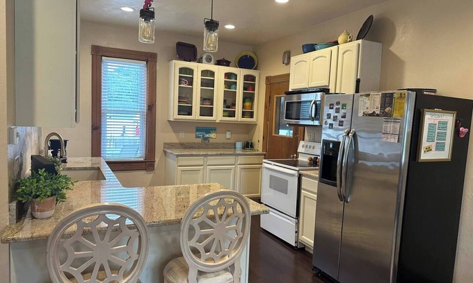 Nestled in Little Chute, this charming house offers guests 2 excellent bedrooms with queen beds and 2 gorgeous bathrooms complete with a bathtub. An additional office space with a cozy twin bed provides extra comfort. Enjoy amenities like WiFi, heating, and AC during your stay. Experience the magic of Little Chute at our lovely house.