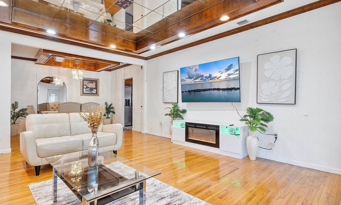 Located in Miami, this marvelous house offers 2 bedrooms with 1 queen bed and 1 king bed. The living room also provides extra sleeping space with a cozy sofa bed. Guests can enjoy amenities like AC, a washing machine, and WiFi during their stay. Experience the magic of Miami at our perfect house. It is a residential area with a private gate. Free parking that hold 4 cars.
