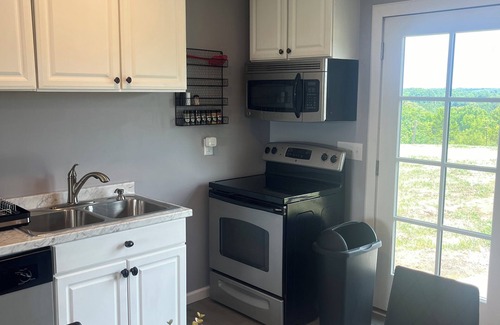 Escape to this lovely house in picturesque Stamping Ground. This enchanting property features 2 cozy bedrooms with a king and queen bed, 2 bathrooms with showers and hair dryers, and an additional living room space with a comfy sofa bed. Guests can enjoy the convenience of heating, AC, iron, and more. Whether you're looking for a perfect weekend getaway or a relaxing retreat, this charming house is the ideal choice for your next vacation. We look forward to welcoming you to our place. This property has gorgeous views and sunrises and sunsets. The horses are in the fields next to the house. This is on our farm so there may be tractors and equipments going up and down the driveway
