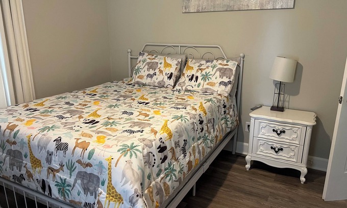 Discover this adorable 2-bedroom gem in Elon. This nice house features 2 queen beds, a cozy living room with a crib, and a bathroom with a bathtub and hair dryer. Guests can enjoy WiFi, AC, heating, a washing machine, and more during their stay. We're happy to assist with any questions while you stay at our house.