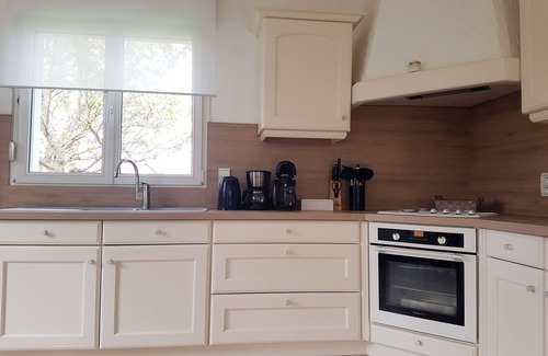 - Fitted kitchen open to living room, lounge area with flat screen TV (140 cm), wood stove.