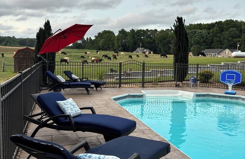 Perfect for a getaway, this delightful property features 2 queen beds, 3 bathrooms (including a spa shower)and downstairs has a futon. Guests can enjoy the pool, pool table, fishing pond, amenities provided. Kickback, relax, and enjoy everything Cullman and our house has to offer. Close to Heritage Park,Smith Lake, Aquatic Center & Stoney Lonesome.Plenty of parking space & room to ride your ATV. Relax and enjoy this quite countryside home while grilling steaks by the pool, take a relaxing bath in the claw foot tub or enjoy the Spa Shower for two.