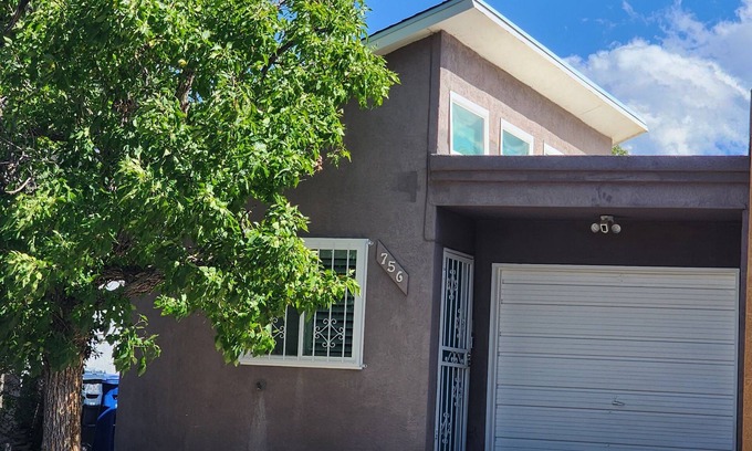 Close to the Albuquerque foothills, this delightful house boasts 2 gorgeous queen bedrooms, each equipped with toiletries and hair dryers for your convenience. The primary bedroom has an ensuite bathroom while the secondary bedroom has a refrigerator. With 2 bathrooms featuring showers (and 1 bath tub) and bidets, guests will feel right at home. The property also offers refrigerated air (no ineffective swamp coolers), heating, WiFi, an iron, and a dryer/washing machine. There is a back yard with seating and a fire pit. Kitchen is fully stocked with essentials. It's easy to see why you'll be able to unwind at our place.