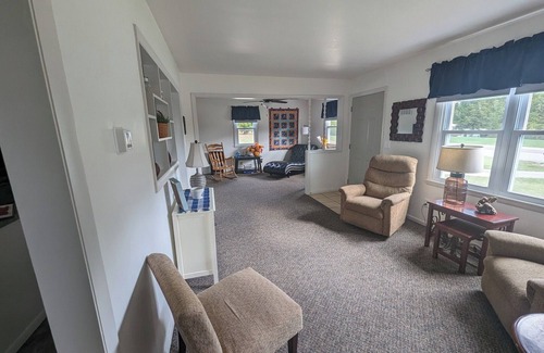Stay comfortably in Bloomington at this 2-bedroom house. Relax in the fabulous bedroom with a queen and bedroom with a full bed. Enjoy the tranquil bathroom with a shower. This terrific property also offers WiFi, heating, AC, and a washer and dryer. Large corner lot in a rural setting yet near the interstate 1-69. Covered back porch with patio furniture perfect for drinking your morning coffee. We hope you'll enjoy your stay at our house.