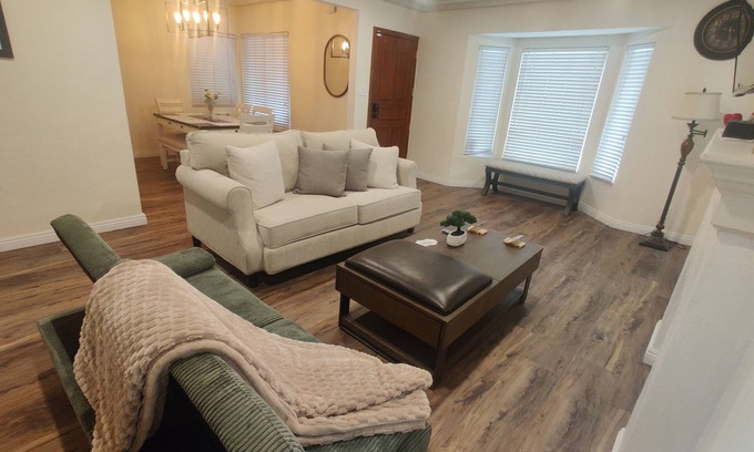 Consider this house your home away from home while you visit Inglewood. With 2 queen beds in the 2 bedrooms and a cozy living room with a sofa bed, this property is perfect for small groups or families. Enjoy WiFi, AC, heating, and a hair dryer for your convenience, and most importantly follow you favor team at SOFI STADIUM AND INTUIT DOME. We think our place will help you experience everything Inglewood has to offer.