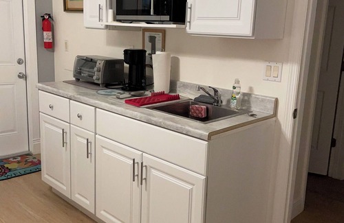 Welcome to our Garden Retreat! This charming escape accommodates up to four guests with it's own private entrance and designated parking. Included are a Master bedroom with Queen bed, dresser, side tables, storage trunk, large closet and an Efficiency with Full bed, kitchenette, full size refrigerator, Keurig coffee pot, airfryer/toaster oven combo, rice cooker and a dining space offering picturesque garden views. The bathroom is equipped with a hair dryer, soap, shampoo and conditioner, for your convenience. Roku TVs are in both rooms. Outside, relax in the garden and soak in the serene countryside ambiance. Experience the perfect blend of comfort and natural beauty, where every detail is crafted to make your stay unforgettable. We are here to answer all your questions and concerns.
