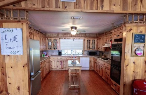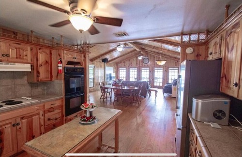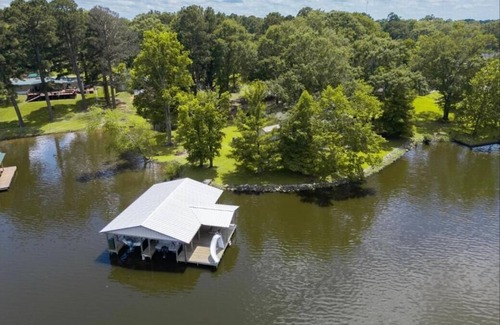 Escape to this delightful house on picturesque Lake Murvaul. This charming property features 2 cozy bedrooms with a mix of sleeping arrangements to accommodate up to 8 guests. House right on the lake. Includes a boat house with a slide and fish cleaning sink. Also included are some fishing poles and floaties. Enjoy grilling out on a large 2 level deck. With modern amenities like WiFi, a washing machine & dryer, and AC, your stay will be comfortable and convenient. This home is also wheelchair accessible. Enjoy your time on Lake Murvaul at our welcoming house.