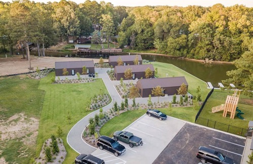 You'll easily make yourself at The Cabins at Lake Cypress Springs. Situated on the water's edge, steps away from the many amenities of The Cove, these modern rental cabins offer comfortable accommodations for guests at this relaxing lakeside retreat. Each cabin includes 2 bedrooms with 1 king bed and 2 built in queen bunk beds. There are also boat slips to keep your boat overnight or rent a boat steps away from your cabin. Enjoy the indoor fireplace, outdoor fire pit, private outdoor space, two smart televisions with Wifi, coffee station, mini fridge and bar area. Take in the amazing lake views right from your bed!