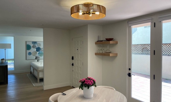 This spacious two bedroom/two bath condominium was recently remodeled with elegant finishes and designer furnishings. Located in the heart of the historic Rancho Santa Fe village, it is walking distance to the lovely Inn at Rancho Santa Fe (compare prices!) as well as award-winning restaurants and bars such as Mille Fleurs. Enjoy the community trail network and the well-attended Cars & Coffee on Saturday mornings. Less than 5 miles to the beach and the Del Mar Fairgrounds (host to the San Diego County Fair and the Del Mar Racetrack), this centrally located unit provides a relaxing location from which to explore San Diego. Fabulous coastal towns such as Del Mar and La Jolla, the Torrey Pines State Beach and numerous golf courses are all a stone’s throw away.