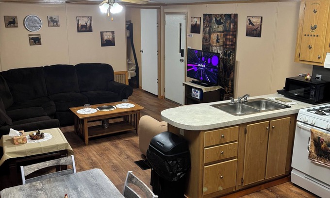Nestled in Valley Head, this delightful mobile home offers a cozy retreat for guests. With 2 bedrooms including a queen bed and the second bedroom offers a twin over full bunk bed, it's perfect for a small group or family. Enjoy the convenience of amenities like a hair dryer, iron, WiFi, full kitchen, and washer and dryer during your stay. The bathroom is equipped with a hair dryer for added comfort. Relax with the whole family at this peaceful place to stay. The camp offers an open floor plan with easy access to each room. There is a large sectional couch and love seat located in the living room. Where you can set back relax and feel at home after a long day of fishing, hiking, skiing, or whatever your adventure may be. Book now and enjoy everything this mobile home has to offer. Tygarts Valley Head Waters - 1 Mile Elk River Fishing Access - 6.8 Miles