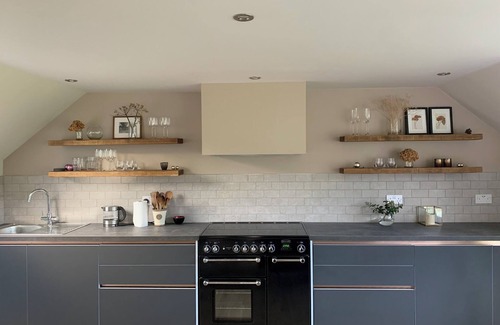 The old stables of the former coach house of Arngomery Court has been renovated to form a two bedroom cottage. The property with the main living area to the top has wonderful views of the surrounding fields and trees. Sleeping up to four people the Stables is beautifully spacious and bright. On warm days guests can also enjoy the views from the private terrace and balcony. Linen, towels, and a basket of logs are included in the price. Well behaved dogs are welcome. Neighbouring Arngomery Cottage is also available to rent for larger groups of family and friends.