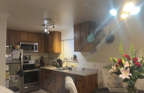 Stay comfortably in Cotati at this 2-bedroom townhome. The bedrooms feature 2 queen beds, perfect for a brilliant night's sleep. Enjoy the tranquil surroundings and take advantage of the fitness room to keep active. With amenities like WiFi, heating, and a washing machine, your stay will be pleasant and stress-free. Kitchen has coffee maker, oven, microwave, and dishwasher and of course help yourself to cups, plates, and utensils mi casa tu casa. Both bathrooms come equipped with soap&towels. Upstairs has a bathtub for added convenience and shower with 7 settings on shower head including massage. If you need to wash/dry clothes we have a wash room available in the back of house. And if you want to relax and have a cinema night we have offer a projector that has access to Netflix, Hulu, HBO Max, Discovery Plus etc so pop up some popcorn and have yourself some fun. This is a townhome in a peaceful community where people raise their families in and there is a cute playground, swimming pool/jacuzzi, and a tennis court. Walking trails are nearby as well as a train station just literally a 5 minute walk and that train can take you to San Francisco. All aboard Cotati Express station come on in feel at home and of course we’re close to all the Napa Wineries and the Graton Resort and Casino is in Rohnert Park just a 10 min drive(free valet parking). We'll be available to answer any questions while you stay at our place.