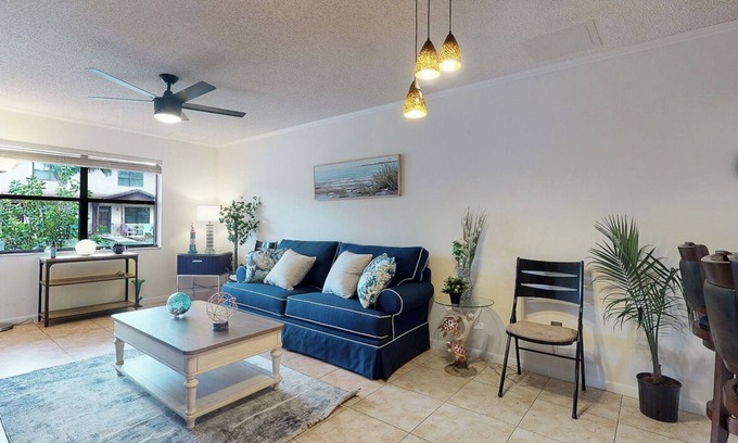 Welcome to a clean & beautiful beach themed townhouse located in exclusive Ponte Vedra Beach. Over 1000 sq ft, 2 bdrm, 1.5 bath abode. Newly Upgraded tiled bathroom/ shower and 3 Smart TVs (Roku). Patio and backyard. Cool AC and fast WiFi !