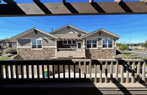 Get ready to relax in this 2-bedroom townhome in Aurora. This cool retreat features a king bed and a queen bed, perfect for a tranquil night's sleep. With amenities like WiFi, AC, and a fitness room, guests can unwind and recharge. Relax while exploring the many Colorado attractions that are close by. Enjoy the many amenities that surround this property such as dinning and shopping within walking distance. Provides you with all the comforts of a home away from home. Fully furnished home includes a kitchen with everything you need to host a dinner or make breakfast in the morning, bathrooms stocked with soaps and shampoo along with towels for you to use. If there is anything missing - Just ask! Make your holiday one for the books with a stay at our place.