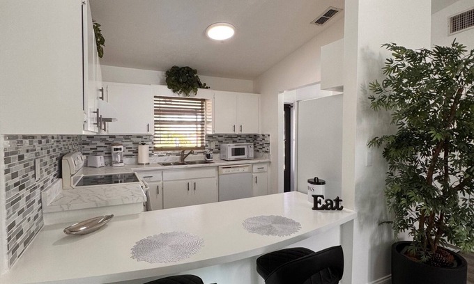 This Lake Placid recently renovated villa boasts 2 inviting bedrooms - one with a queen bed and the other with a twin-over-full bunk bed. Modern kitchen, cozy living space equipped with modern amenities like a washing/Dryer machine, heating, AC, TV and WiFi. With 2 bathrooms for convenience, guests can relax and unwind in this marvelous retreat. Convenient parking with one cover spot. Commercial vehicles welcome. Enjoy all that Lake Placid has to offer when you stay at our place.