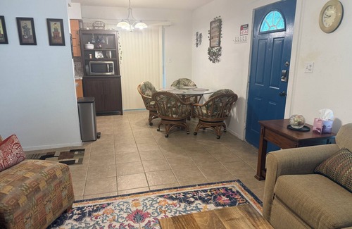 Discover the beauty of Austin from this 2-bedroom villa. This adorable property features 1 queen bed, 1 twin bed, a cozy living room with a sofa bed, and a bathroom with a hair dryer and shower. Enjoy the convenience of amenities like an iron, washing machine, WiFi, and AC during your stay. Make your holiday one for the books with a stay at our place.