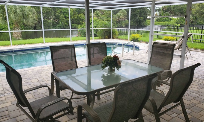 Nestled in Nokomis, on a lake, this delightful 2 bedrooms house offers a peaceful retreat for guests. Pool and dock on lake. This enchanting property provides all the comforts of home. The serene surroundings and pleasant ambiance make it the perfect place to unwind and relax. Convenient location between Sarasota and Venice. Just 7 min drive to the beach. Oscar Shearer national park is next door for your walk in the nature, swimming, kayaking, fishing and more. The house has a nice pool and patio. Experience the magic of Nokomis at our house.
