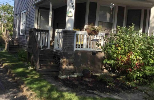 charming cottage style 2 bed, 2 bath, large living room, office kitchen front porch and backyard. 5 minute walk to rapid station, cwr, ,museums,galleries,shopping,restaurants and more. To go to downtown Cleveland it’s a 15 minutes but bus, car or transit. We offer many amenities to make your stay as easy and pleasant as possible, including a continential breakfast, stove, refrigerator, washer and dryer, bedding, toiletries, t.v, cable, internet, backyard with comfortable furniture, grill