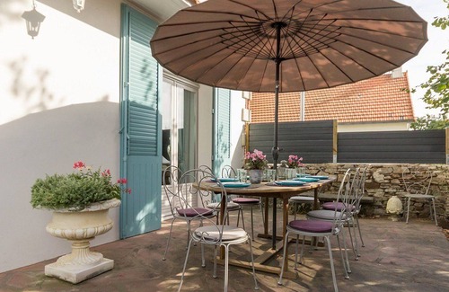 Charming early 20th-century house, quietly located in the heart of the village, close to all amenities. Access to the house is via 3 steps. A large terrace overlooks the enclosed garden with flowers and trees (600 m²). 8 bicycles, a ping-pong table, and children's games are available.