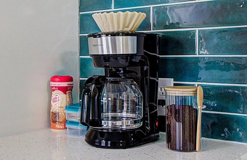 ✔ Coffee pot, filters, coffee, and cream & sugar