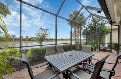 Escape to this fantastic house in the Venetian Golf & River Club in picturesque North Venice. This gorgeous property sleeps 4 in 2 bedrooms, including a queen bed and a sofa bed. With 2 bathrooms equipped with a shower, bathtub, and a hair dryer, you'll feel right at home. Whether you're relaxing or dining outside in the lanai with a Weber grill, using the washer & dryer, or staying connected to WIFI or it's 3 large screen TV's, this excellent house has everything you need for a comfortable stay including a dining room and a fully appointed kitchen. There is also a two car attached garage The community offers a beautiful pool with full service tiki bar, a full gym, fine dining room, plus tennis & pickleball courts. It's only a short drive to beaches and downtown Venice shopping. We think our place will help you experience everything North Venice has to offer.