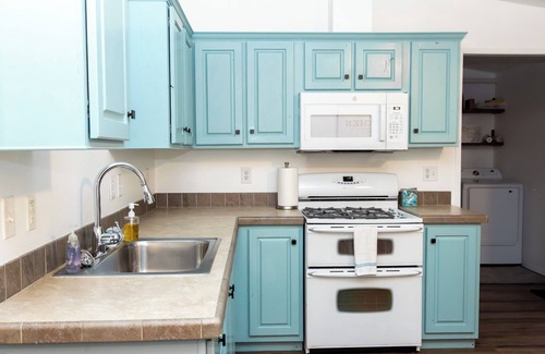 With 3 bedrooms (two rooms featuring a queen mattress and the third with two sets of bunkbeds which will sleep up to 5), two fold down sofas, and additional air mattresses this location can host the whole family with sleeping for up to 15. The littlest ones will enjoy the comfort and safety of a pack and play. With a large deck and backyard there is plenty of space for grilling and paying games outside. Or unwind under the stars after a long day of playing at any of the nearby destinations.