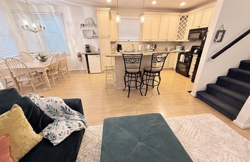 Escape to a lovely 3-bedroom 2 bath first floor condo in Ocean City. This cozy retreat features a king bed, queen bed, and bunk bed, perfect for families or friends. With amenities like a washing machine, WiFi, and AC, beach tags, BBQ grill , front porch, outside shower and a fully stocked kitchen. Guests can relax and unwind at your new home away from home. Fall in love with Ocean City and enjoy the magic it has to offer.