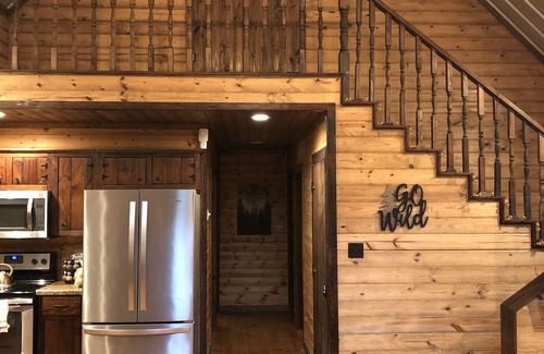 Have fun with the whole family at this stylish place minutes from Sardis Lake. Tastefully decorated and furnished. Kitchen has stainless appliances. Living room is open with comfy leather sectional sofa and smart tv. Two bedrooms down each have queen beds with nice memory foam mattresses. Upstairs you’ll find a large loft room with two queen beds and a full bathroom. Upstairs also has a walkout balcony to enjoy the wooded lot. Large three-sided wrap around deck to enjoy. Fire pit sitting area. Security cameras outside.