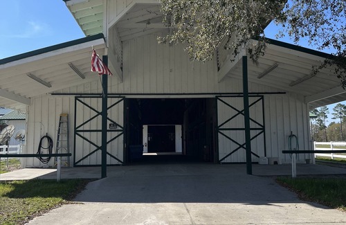 Experience the beauty of farm life in this 3-bedroom barn lodge. Nestled in the heart of the city, our superb property offers a cozy and comfortable retreat for guests. With 1 king bed and 2 full beds, our wonderful barn can accommodate a group of friends or a family looking for an excellent getaway. Enjoy the convenience of amenities like AC, heating, and a washing machine. The 2 bathrooms are equipped with showers for your convenience. Make your holiday one for the books with a stay at our place. Enjoy a cup of coffee as the sun comes up, while watching the horses graze beneath you in the open pastures.