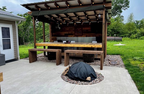 The newly Remodeled cabin in 2023 has great outdoor views and entertainment space for your time here!! You’ll fall in love with the addition of a hand crafted Tiki bar, 12’ x 42’ pavilion and outdoor kitchen.