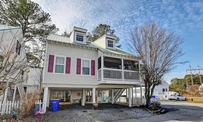 Elevated on pilings, this charming getaway offers a perfect blend of comfort and coastal charm.