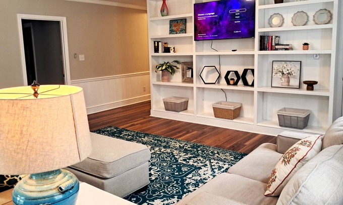 Discover the serenity of Fayetteville from this 3-bedroom cottage. With a king, queen, and full bed, guests will find comfort in this beautiful retreat. Enjoy the fabulous living room with a cozy sofa bed for extra space. Two bathrooms equipped with a hairdryer and shower ensure convenience. Experience what Fayetteville has to offer with a stay at our cottage.