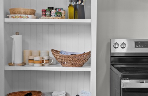 A classic cottage design with recent updates: the house was originally built in the 1950s and had extensive renovations and updates in 2024. You'll find a spacious kitchen with cooking and baking pots, pans, and utensils, along with a dining table, wine glasses, and a cozy living room with TV & games. There are also three porches with outdoor furniture and rocking chairs where guests can sit and enjoy the outdoors!