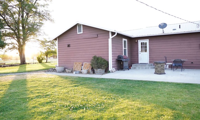 Welcome to this charming farmhouse in the outskirts of Prosser. Enjoy our two silky chickens Hanzel and Grettle as well as the farm cat. Pet livestock and enjoy the beautiful country sunrise and sunsets over the pastures and distant hopyards. With 3 bedrooms, including 1 full bed, 1 queen bed, and 1 king bed, everyone will find their perfect spot to unwind. Large kitchen table and a great yard to play games in. One of a kind experience that can't be had anywhere in Prosser.