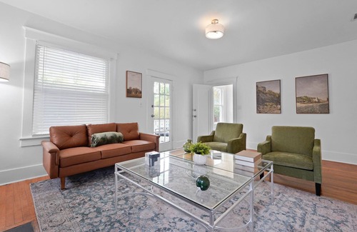 beautifully restored 1920s bungalow is tucked away on a quiet, tree-lined street in one of the city’s most vibrant and historic neighborhoods. Blending classic Southern charm with modern comforts, the home offers three spacious bedrooms, two full bathrooms, and thoughtfully designed living spaces ideal for families, couples, or small groups. Inside, you’ll find original hardwood floors, high ceilings, and a fully updated kitchen equipped with stainless steel appliances — perfect for enjoying a relaxed meal at home. Unwind with morning coffee on the classic front porch, or sip wine in the private, fenced backyard after a day exploring the city.