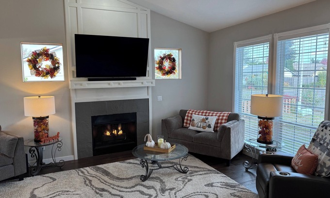 Comfortable Living Spaces – Relax in the cozy living room, complete with a gas fireplace for those chilly Oregon nights. Stay connected with free Wi-Fi throughout the home.