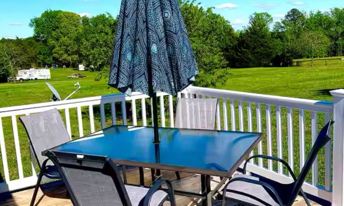 - Private lakefront hideaway with dock, swing bench, remote work desk, & AC