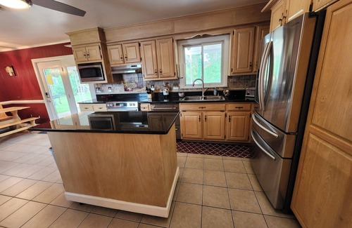 Enjoy a peaceful stay at this 3-bedroom house in Hampton. With 2 full beds and 1 king bed, this charming property offers a brilliant retreat for guests. The house features an in-ground pool, heating, AC, game room and fully equipped kitchen for your convenience. The 2 bathrooms are equipped with showers. A great place to call home base while you're away, we hope you enjoy your stay.
