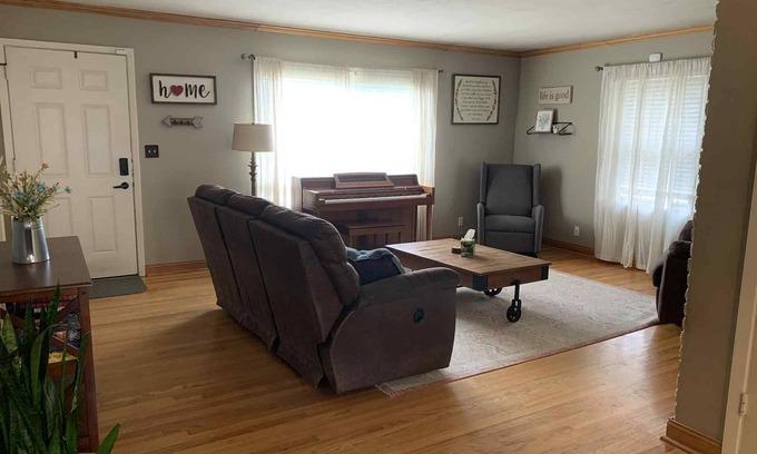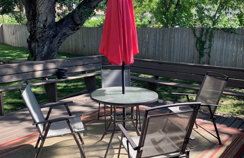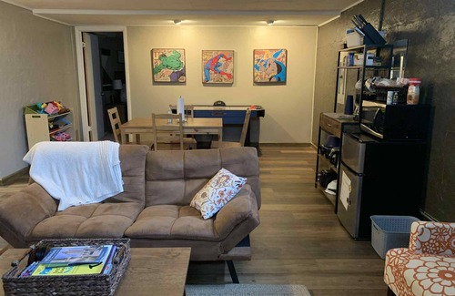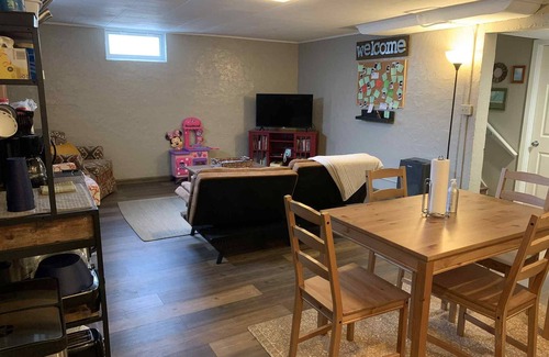 This charming 3-bedroom house in Lincoln is the perfect family-friendly stay, conveniently centrally located and just minutes from downtown, the zoo, Memorial Stadium, restaurants and grocery stores, and bike trails. With a king bed, 2 twin beds, a full bed, and even a twin trundle bed and pack-and-play crib, this fantastic property has everything you need for a comfortable stay. Enjoy amenities like free driveway parking, cozy linens and towels, and all the basics from shampoo and body wash to cookware and speedy Wi-Fi. One bathroom is a shower/tub combo with an extra deep tub for soaking and the other is a shower only. The basement comes with a kitchenette and air hockey table for entertaining. Kickback, relax, and enjoy everything Lincoln and our house has to offer.