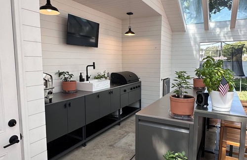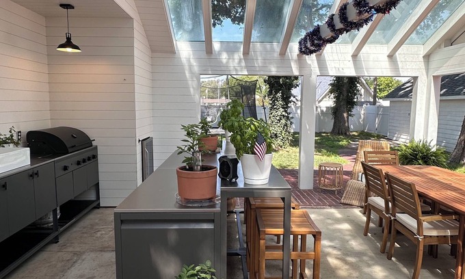 Built in 1883 and recently underwent a complete remodel in 2023. This red brick Italian revival features three bedrooms and two and a half bathrooms, blending classic architectural charm with modern amenities. The standout feature of this home is its beautiful outdoor kitchen and patio, perfect for entertaining and enjoying the serene surroundings. The remodel preserves the home's historic character while offering contemporary comforts for today's lifestyle. This unique place has a style all its own. The property also features 3 bathrooms with a hair dryer, shower, and bathtub. Enjoyable and phenomenal, this house is equipped with heating, iron, WiFi, washing machine, hair dryer, and AC. We think our place will help you experience everything Winfield has to offer.